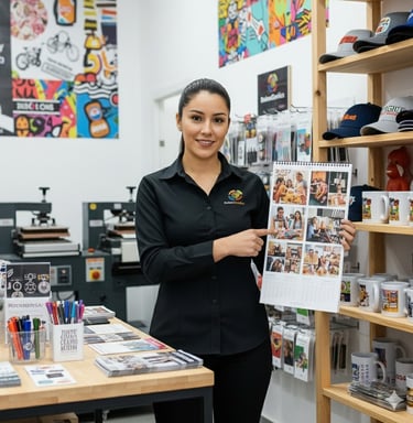 Diseñamos y producimos productos que hablan por tu marca con estilo. Desde tazas, libretas, bolsas, stickers, pines, termos, bolígrafos, artículos personalizados para eventos, campañas o regalos corporativos. Cada pieza se diseña con intención y se imprime con calidad.